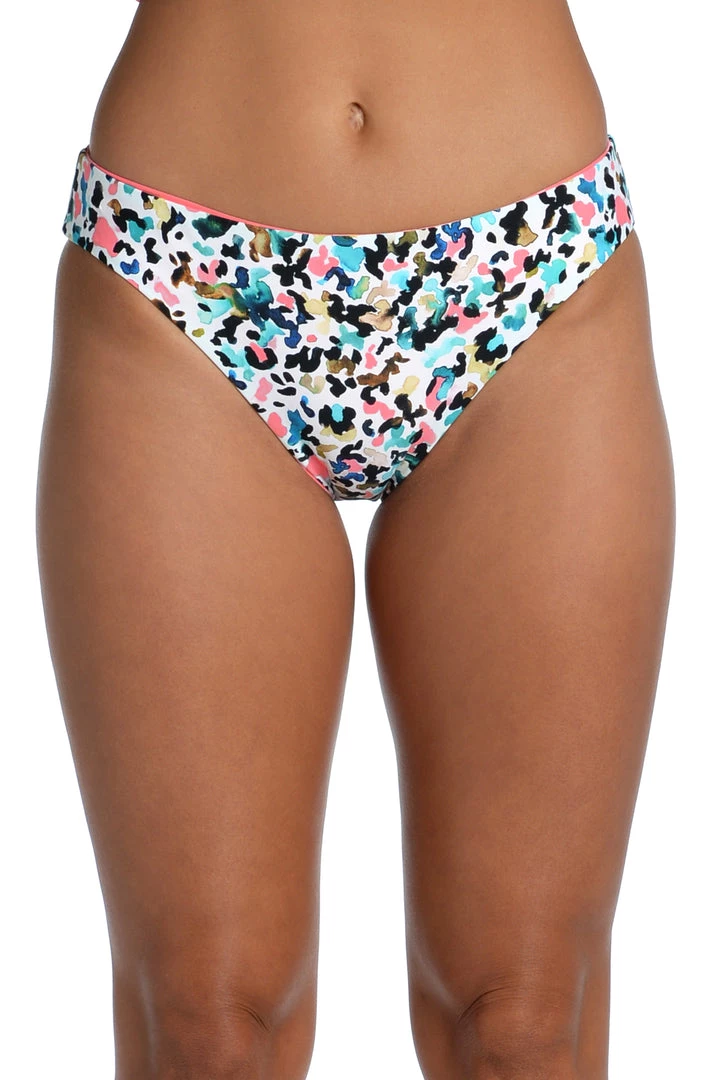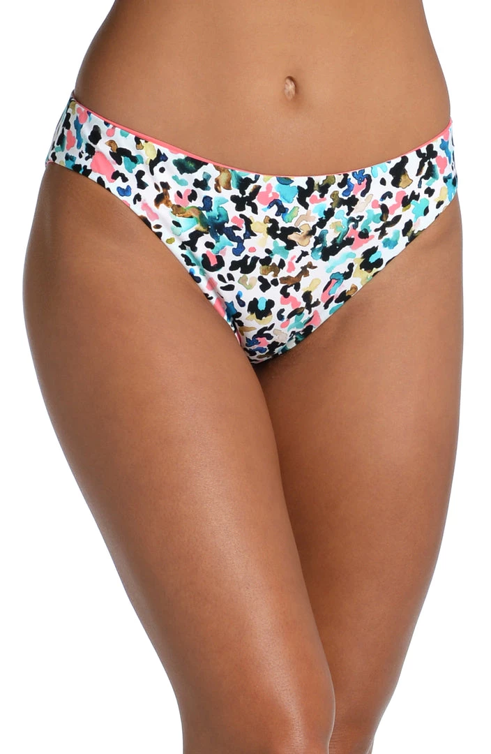 The colorful confetti on these swim bottoms brings a mod update to the classic camouflage print. Offering two looks for twice the wear, they reverse from a multi camo pattern to deep solid pink. Just-right coverage in back provides a comfy, confident fit.