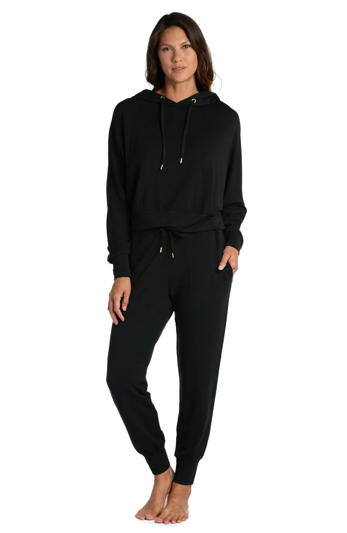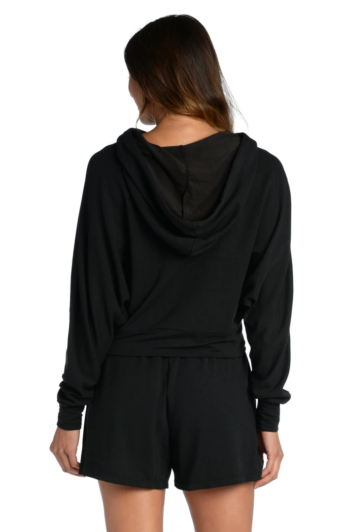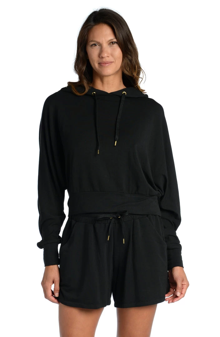 Lounge around or live it up in this French-terry knit collection. Super cute and oh-so comfy, the drawstring hoodie is styled with dolman sleeves and a flirty cropped cut.