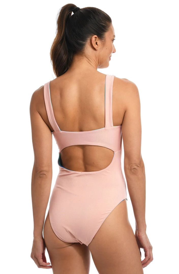 Whether living for a staycation or soaking up the sun in a tropical destination, this tank suit will keep you swimming pretty from sunrise to sunset. Styled with a square neck and high-cut legs, it reverses from a print to a solid so you can double your options.
