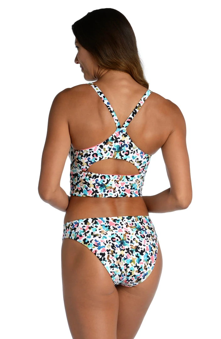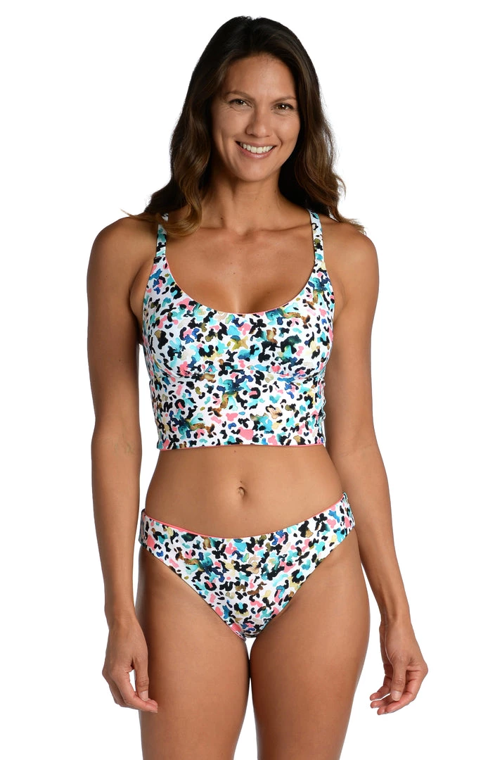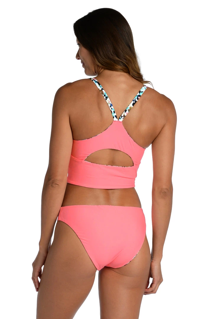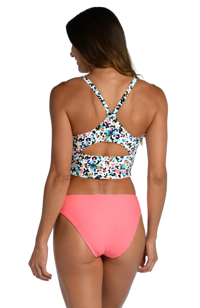 Whether hitting the barre or heading to the beach, this bralette midkini with sporty racerback straps will keep you swimming pretty from sunrise to sunset. Offering two looks for twice the wear, it reverses from a multi camo pattern to deep solid pink.