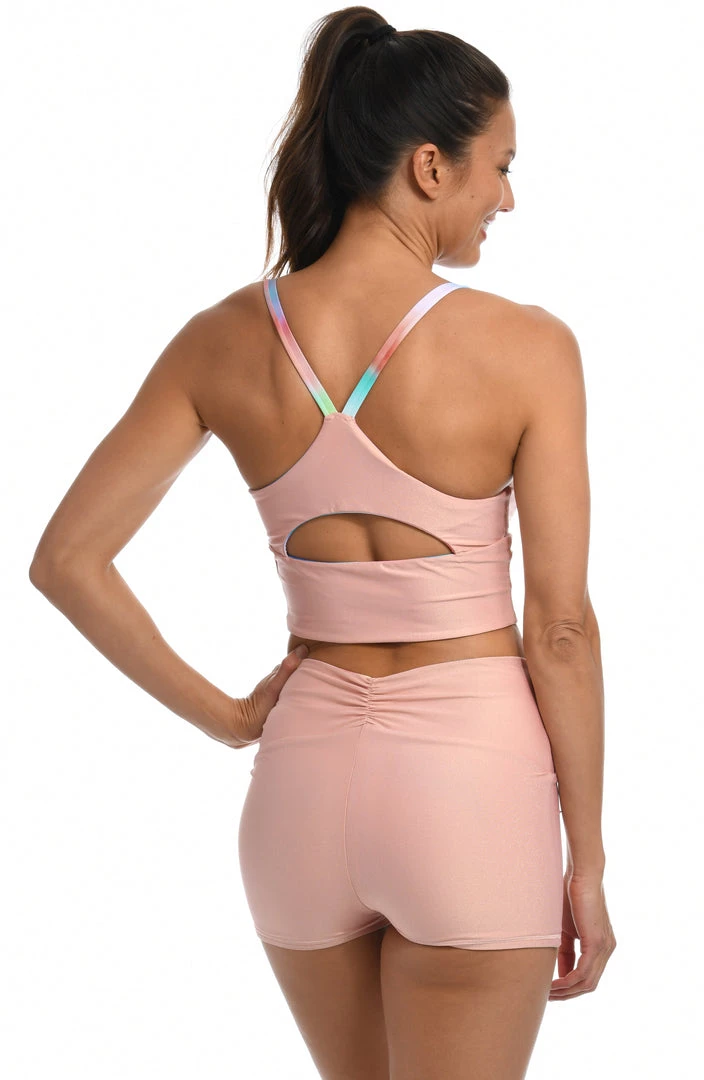Whether hitting the barre or heading to the beach, this bralette midkini will keep you swimming pretty from sunrise to sunset. Reversible for double the options, it’s styled with sporty racerback straps.