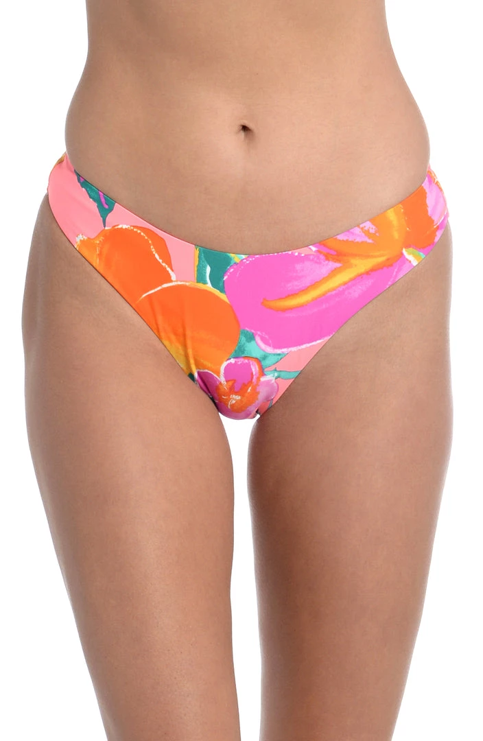 Too hot to handle, the bold tropical print on these swim bottoms matches your vibrant personality. Super sexy yet simple, these scoop-front bikini bottoms have high-cut legs in the front and a hipster fit that instantly flatter the figure. Cheeky rear coverage allows you to highlight your assets.