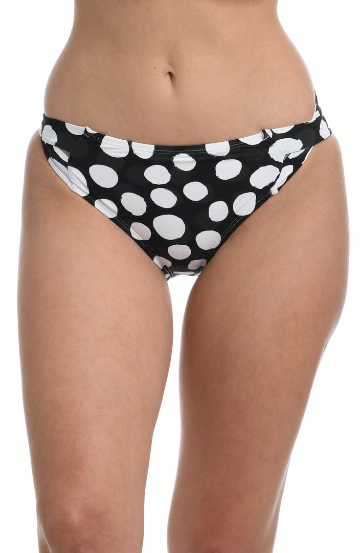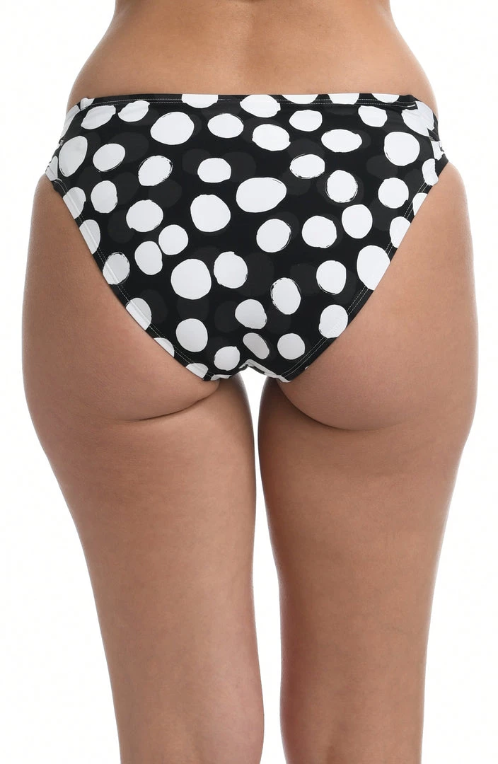 These swim bottoms hit the spot, with an allover mod dot print that gives them a pop of playful personality. The hipster cut with crisscross side bands flatters the figure, while moderate coverage in back allows you to move around confidently, no matter what the day (or evening) brings.