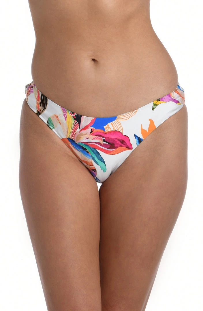 It’s just another day in paradise when you slip on these bikini bottoms in a dreamy tropical-inspired print. Super simple yet extremely sexy, they’re styled with a scooped design. High-cut legs in the front and a hipster fit instantly flatter the figure, while cheeky rear coverage allows you to highlight your assets.