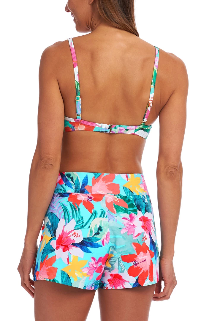 All aboard! Get ready for some action-packed fun with these tropical print board shorts that are up for just about anything. Front seamed pockets offer storage while a drawstring waist adjusts to your comfort and fit, both in and out of the water. The 3″ inseam is set at just the right length to offer coverage while giving you legs for days.