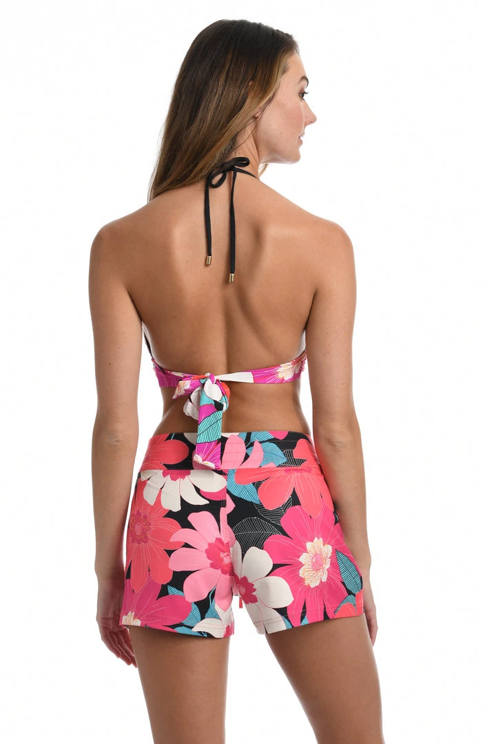 Anchor your yacht in the Marina Grande – even if only in your dreams – and slip on these fabulous boardshorts in a vibrant floral print. Whether you’re jet skiing to shore or hiking to a tropical waterfall, these boardshorts give you room to move while provide a little extra coverage. Styled with front pockets, the waist adjusts for a comfortable fit and the 3″ inseam lengthens the legs.