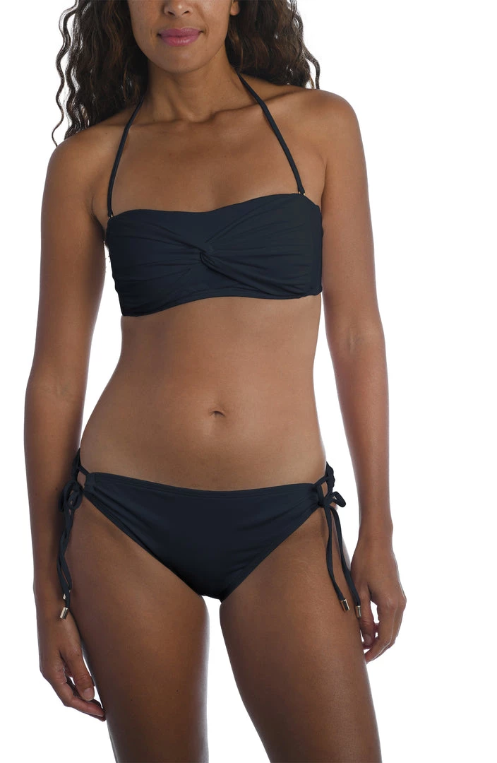 This bandeau bikini swim top by La Blanca features a retro sweetheart cut, while a removable halter and molded cups give extra coverage and support. A knot front detail crosses the front, making this piece a true trend-setter.