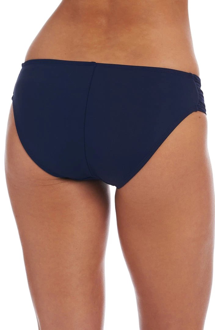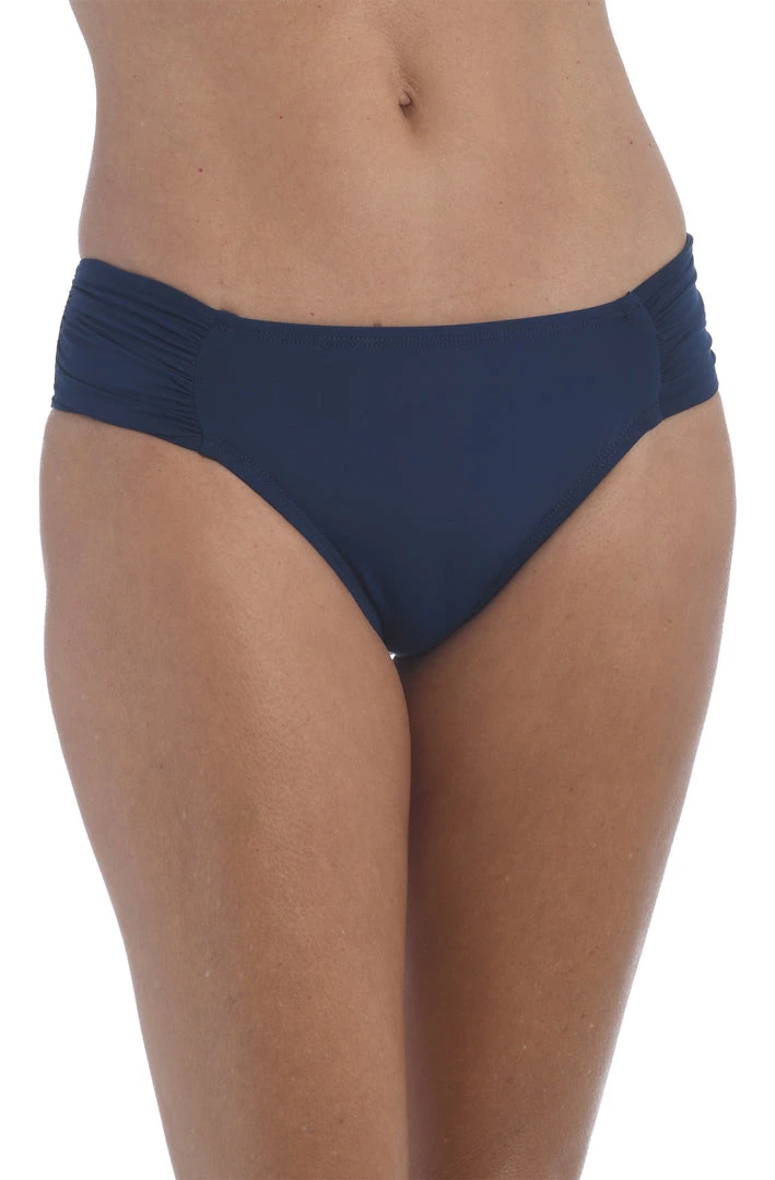 This side shirred hipster bikini bottom by La Blanca blossoms out with playful shirring. The ruched side design gives this bottom a hip-flattering side fit. In addition, the mid-rise fit also offers moderate coverage in back.