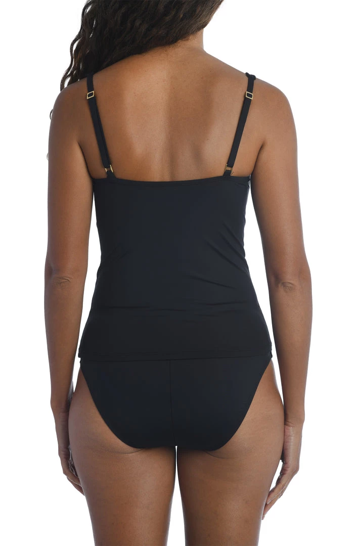 This La Blanca twist bandeaukini swim top is the life of any pool party. The shirred shaping fit is form flattering, yet it conceals any worry spots. Molded cups and adjustable straps are included for support and concealment.