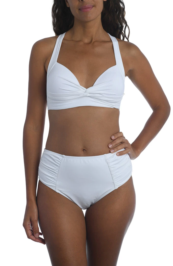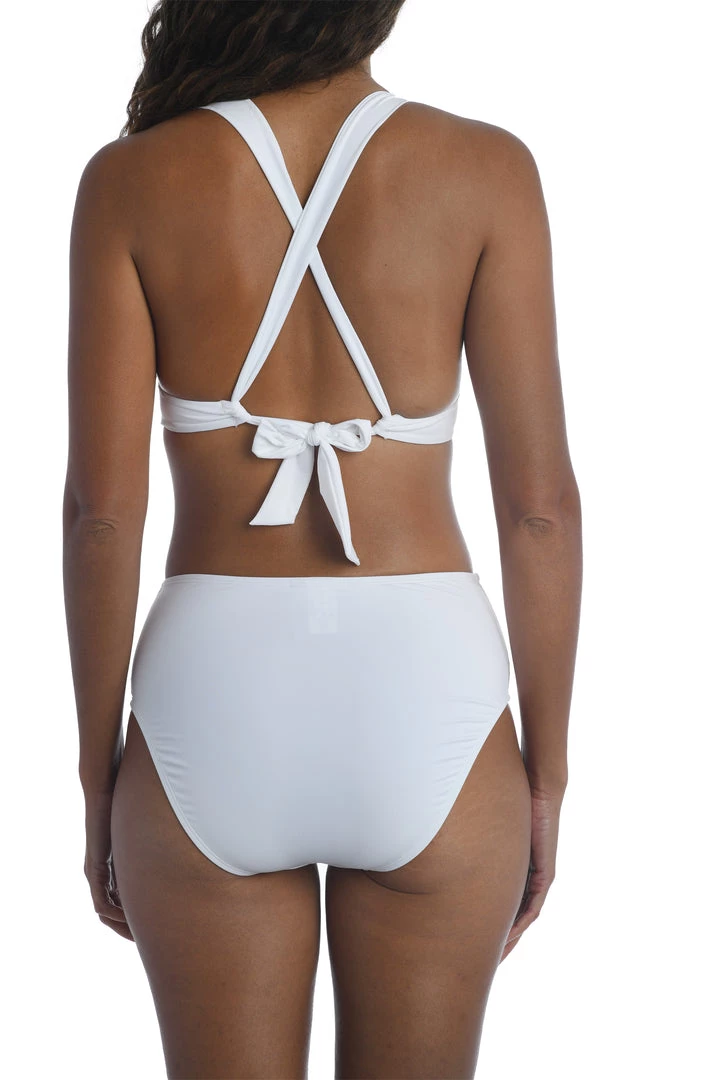 Let your natural beauty shine in this keyhole banded bikini swim top by La Blanca. A banding hem runs around the underbust meeting a flirty keyhole. Adjustable, convertible straps and a back self-tie closure allow for bust adjustment and comfort. Molded push-up cups offer bust support.
