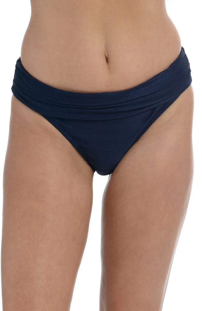 Detailed with a shirred waistband, these hipster bikini bottoms hug in all the right places for a figure-flattering fit. The hipster cut offers stay-put coverage in back so you can feel confident when you jump in the pool or hit the surf.