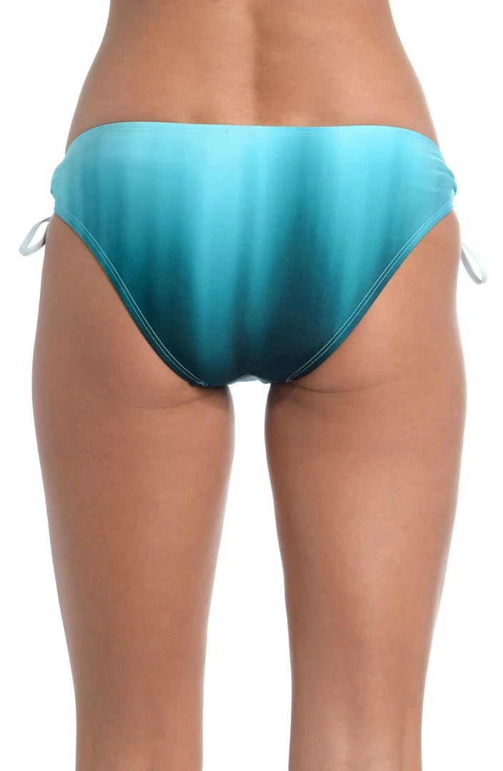 Inspired by the depth of color in the deep blue sea, gorgeous shades of turquoise take on an ombre effect on these swim bottoms. These sexy hipsters with side ties fitted with metal tips can be adjusted up or down so you can show off as much leg as you’d like. A mid-rise cut flatters the hips with just enough coverage in back so you won’t have to worry about them riding up.