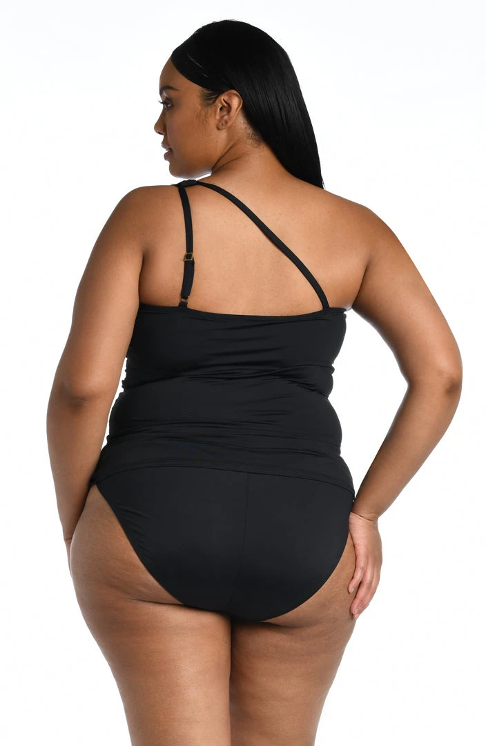 Perfect for every body type, this one-shoulder tankini beautifully balances the neckline while lengthening your arms. Our take on this flattering style is enhanced with a peekaboo keyhole detail on the shoulder. The asymmetrical silhouette continues in back with the adjustable straps. Gentle shirring and tummy control slim the midsection.