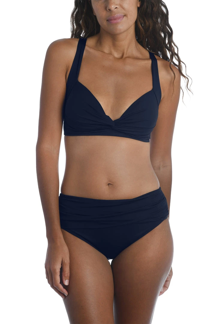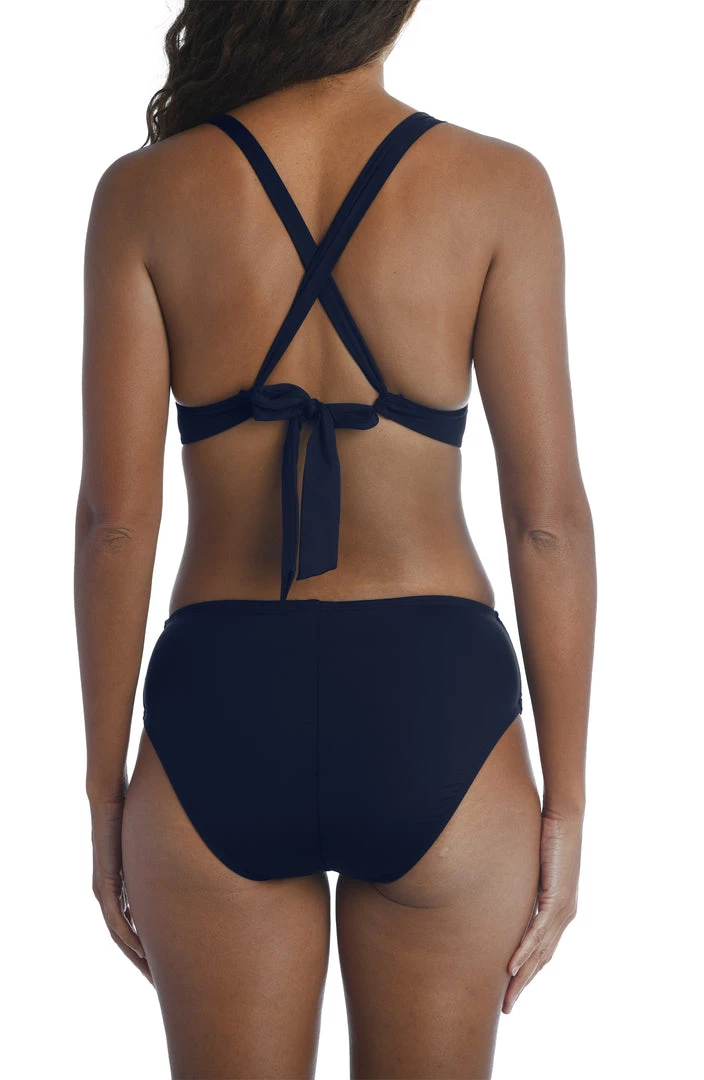 Offered in a slew of statement-making solid hues, this banded bra top has a sweetheart neckline that creates the illusion of curves to accentuate your bustline. Molded push-up cups and convertible straps that tie in back create a little extra lift while still providing modest coverage.