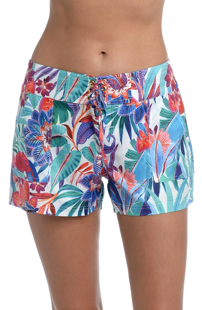 Channel your inner jetsetter with these resort-ready boardshorts that draw upon the vibrant colors of Saint-Tropez while adding a tropical twist. Whether you’re wave hopping on a jet ski or hiking to a waterfall, these boardshorts give you room to move while providing a little extra coverage. The waist adjusts for a comfortable fit and the 3″ inseam gives you legs for days.