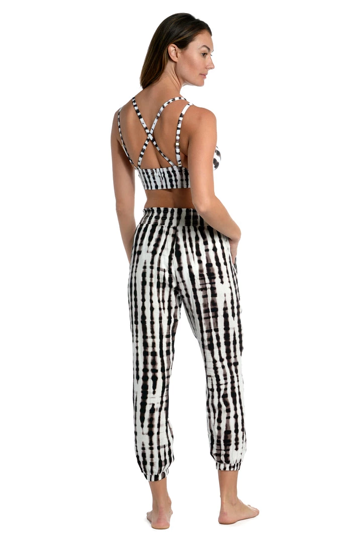 These capris prove that opposites really do attract with a high-contrast stylized bamboo pattern inspired by the ikat prints that hail from Indonesia. Light and airy, these pants are styled with a comfortable and stretchy smocked waist and elasticized jogger-style leg openings. Side pockets make room for small items like lip balm or a room key.